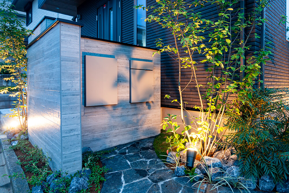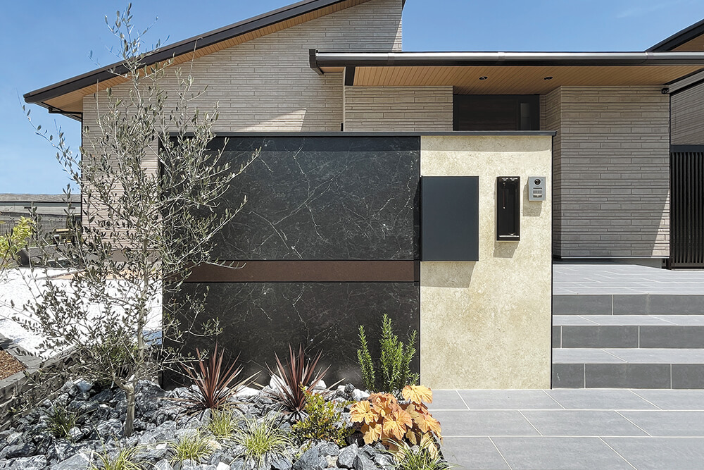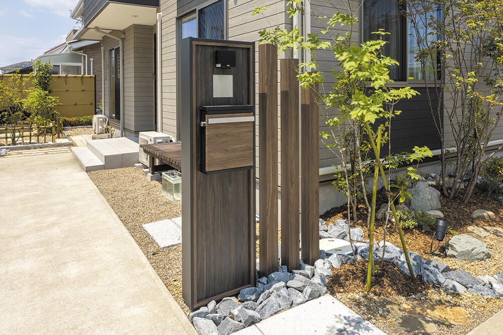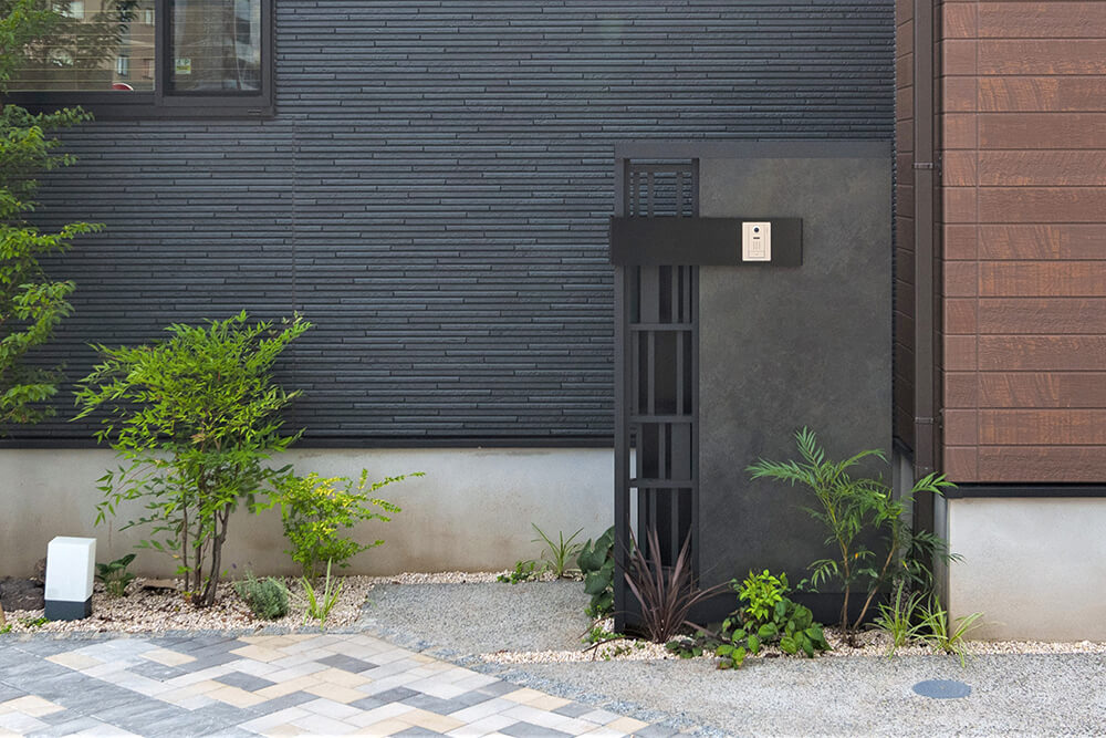 また、幅と高さをしっかり確保できる造作門柱ならではの設計により、玄関前に設置することで目隠しとしても効果を発揮。