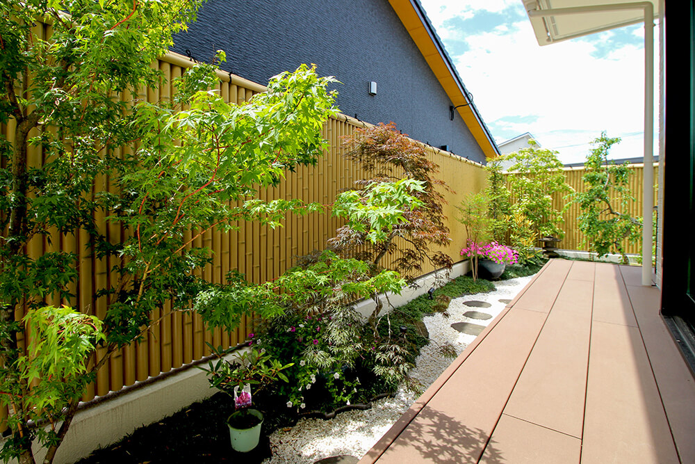 光の入り方を計算した配置により、昼間でも明るく、心地よく過ごせる庭となっています。